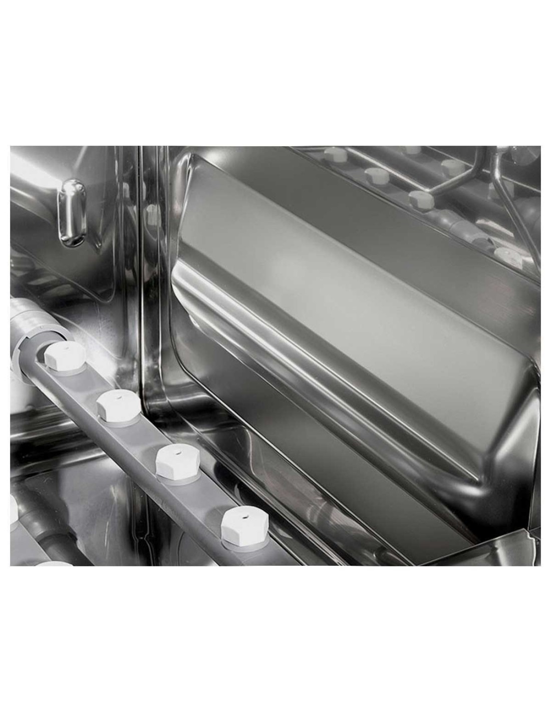 Gracias a su sistema de brazos de lavado fijo de alta cobertura, este lavavajillas garantiza una limpieza profunda y homogénea de vasos, copas, platos y cubertería en cada ciclo. Su construcción robusta en acero inoxidable y sus componentes electromecánicos aseguran un funcionamiento estable, duradero y sencillo de mantener.