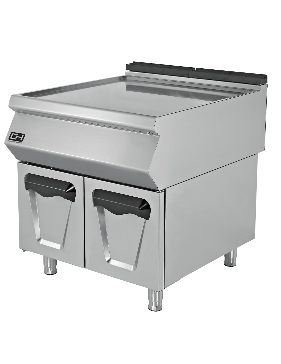 • Plano de trabajo, paneles laterales, paneles de mandos, y chimeneas en acero inoxidable.