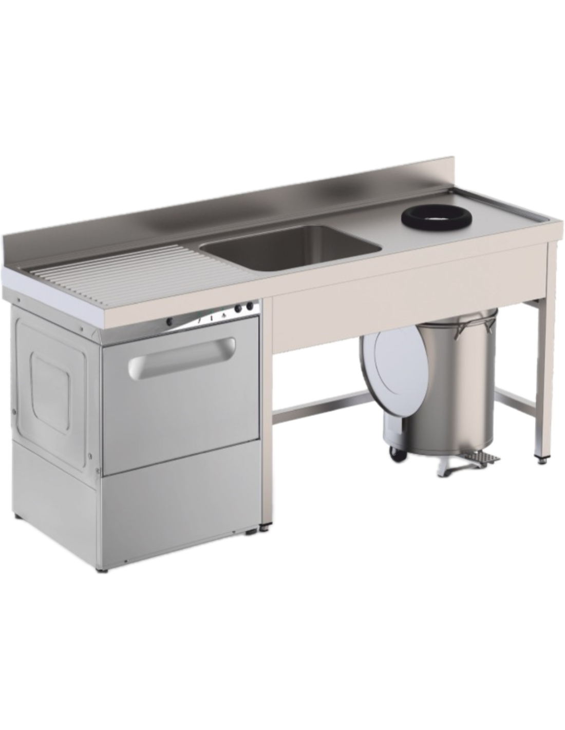 Su construcción sólida y resistente, junto con un diseño ergonómico y funcional, garantiza durabilidad, higiene y comodidad en el uso diario. Ideal para instalaciones donde se requiere combinar un área de prelavado o lavado manual con la instalación de un lavavajillas profesional.