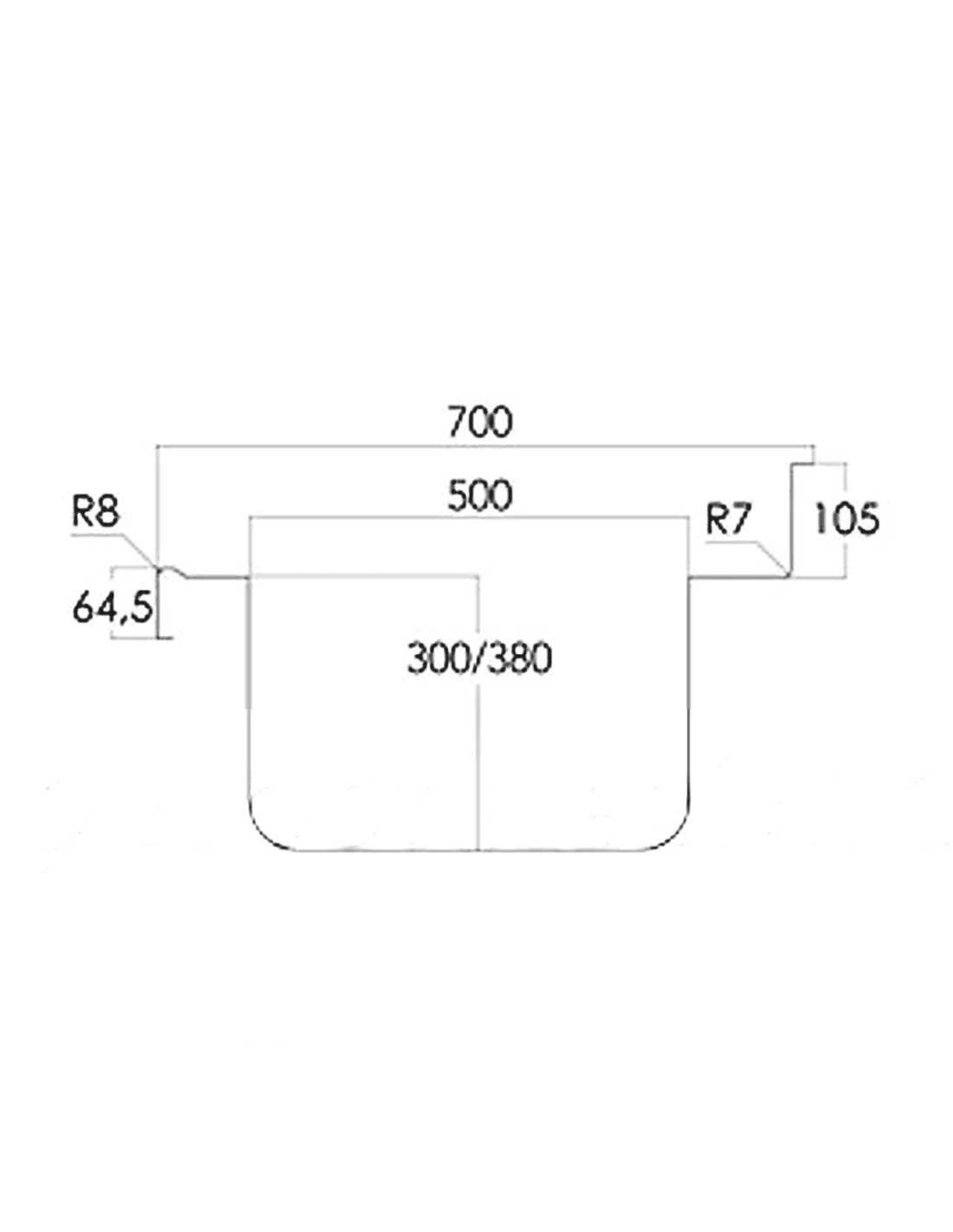 Peto posterior de 105 mm y frontal de 65 mm, con esquinas redondeadas para mayor higiene.