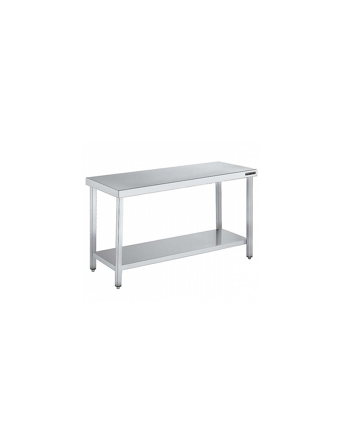 La Mesa de Trabajo Central Gama 800 con 1 Estante de Distform está diseñada en acero inoxidable de alta calidad, ofreciendo resistencia y funcionalidad en cocinas profesionales. Sus patas regulables permiten ajustar la altura según las necesidades de trabajo, garantizando comodidad y versatilidad.