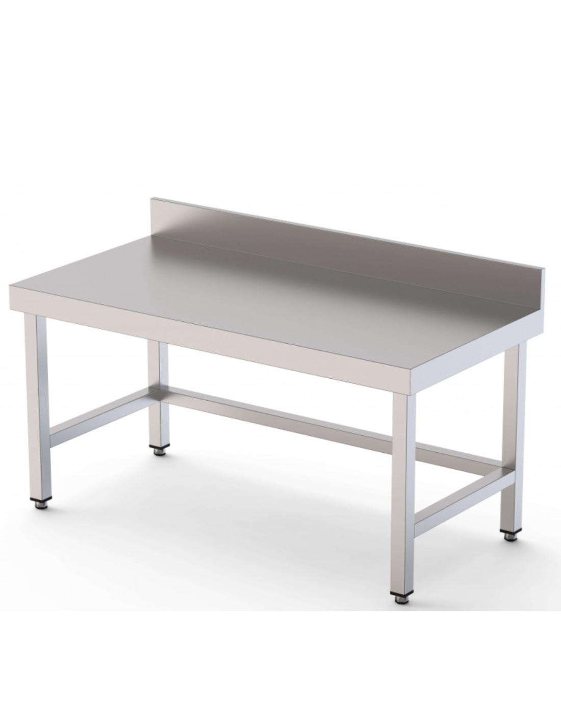 Mesa de trabajo central de acero inoxidable con cajones, puertas correderas y estante intermedio AISI 304 con patas de tubo cuadrado 40x40mm regulables en altura mm. Se suministran montadas