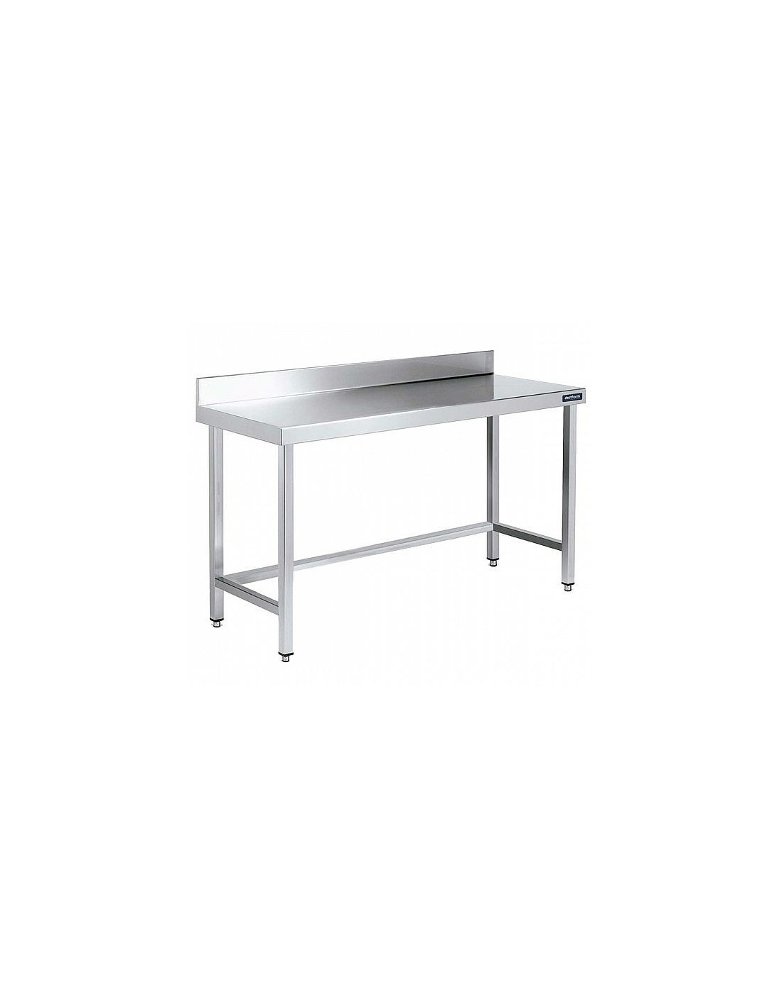La Mesa de Trabajo Mural Gama 600 sin Estantes de Distform está fabricada en acero inoxidable AISI 304 18/10 satinado, con peto posterior de 10,5 cm y encimera reforzada con omegas. Sus patas cuadradas regulables en altura (85–92 cm) y su robusta estructura la hacen ideal para cocinas profesionales, obradores y zonas de preparación que requieren higiene, resistencia y estabilidad. Disponible en anchos de 60 a 280 cm y fondo de 60 cm.