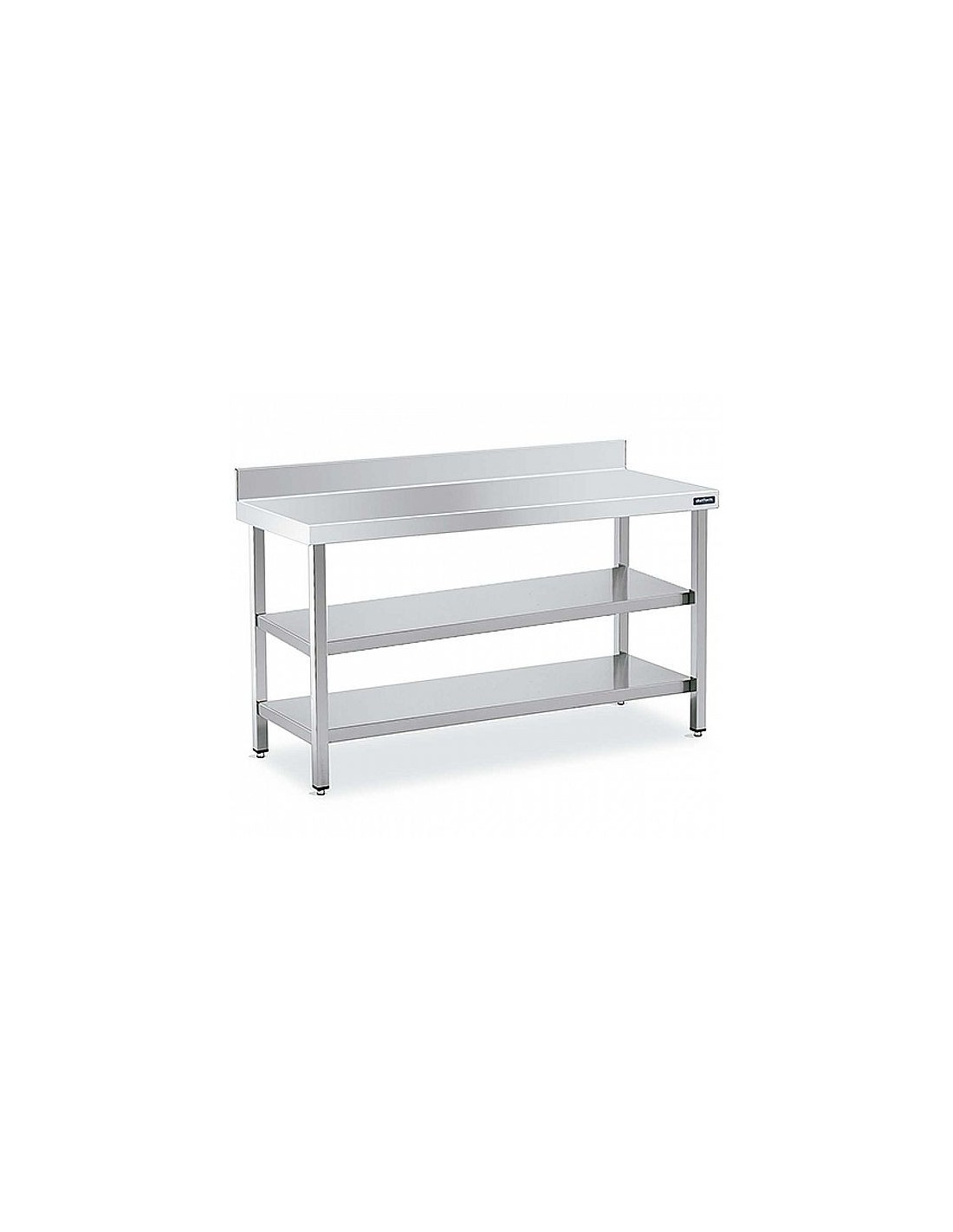 La Mesa de Trabajo Mural Gama 700 con 2 Estantes de Distform es una mesa profesional de acero inoxidable AISI 304 diseñada para cocinas industriales, obradores y espacios de preparación. Cuenta con encimera reforzada de 1 mm, peto trasero de 10,5 cm y dos estantes inferiores que optimizan el almacenamiento. Sus patas regulables garantizan estabilidad y adaptación, para trabajos intensivos en hostelería.