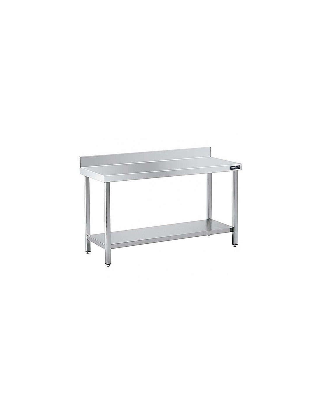 La Mesa de Trabajo Mural Gama 800 con 1 Estante de Distform ofrece resistencia y versatilidad en acero inoxidable AISI 304. Dispone de estante inferior reforzado y patas cuadradas regulables de 85 a 92 cm, adaptándose a distintas necesidades de trabajo en cocinas profesionales e industrias. Disponible en anchos de 60 a 280 cm, se entrega desmontada.