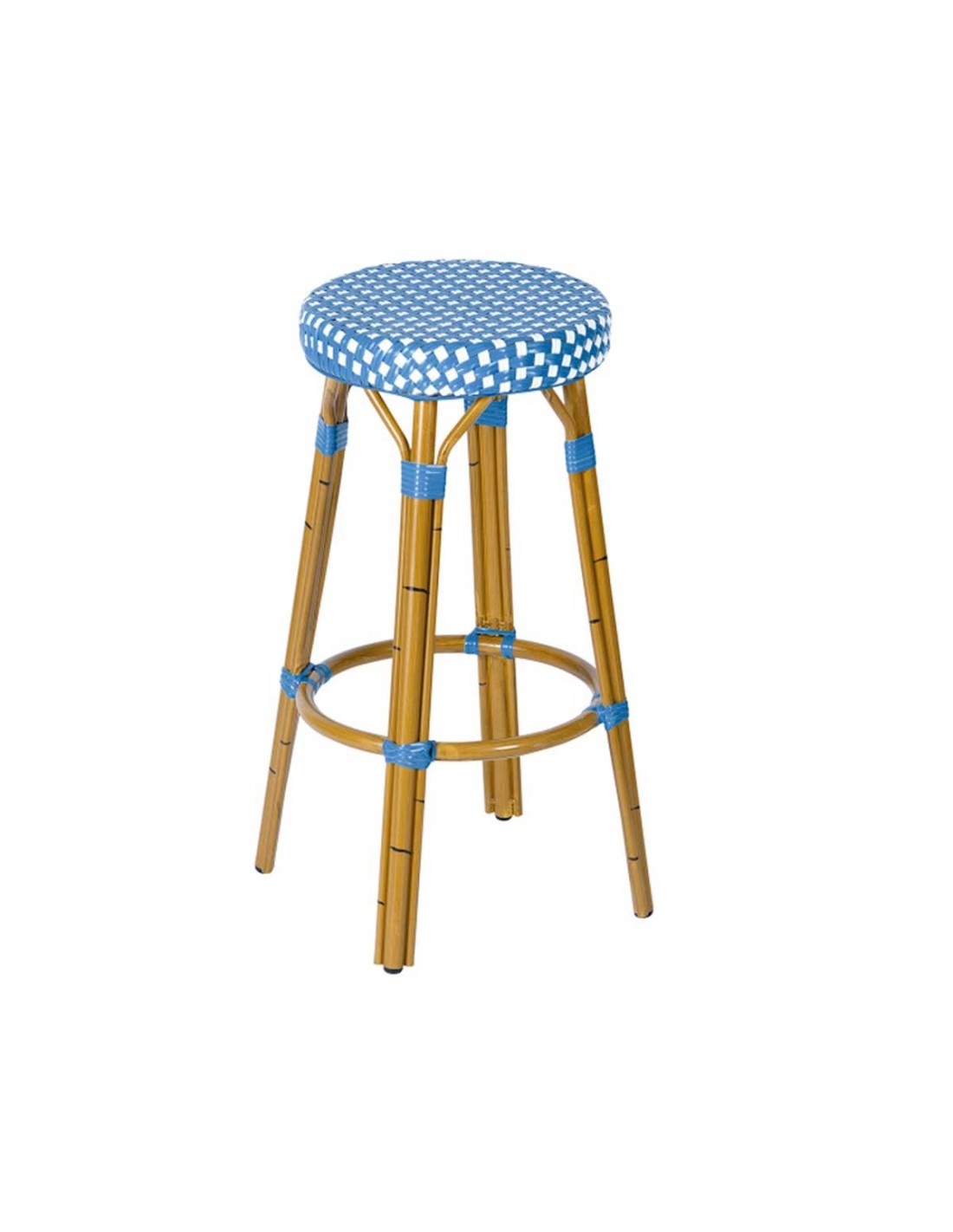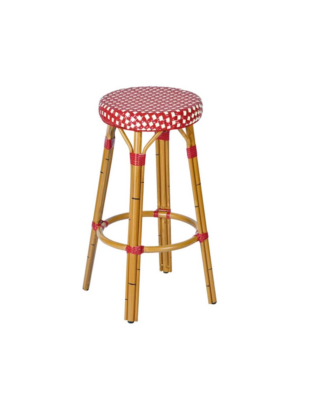 El taburete M5201 de Muebles Romero es un taburete profesional de estilo parisino, apto para interior y exterior. Fabricado con estructura de aluminio imitación caña y asiento de médula sintética tejida a mano, ofrece resistencia, ligereza y un diseño elegante. Perfecto para terrazas, bares y restaurantes con estilo clásico renovado.
