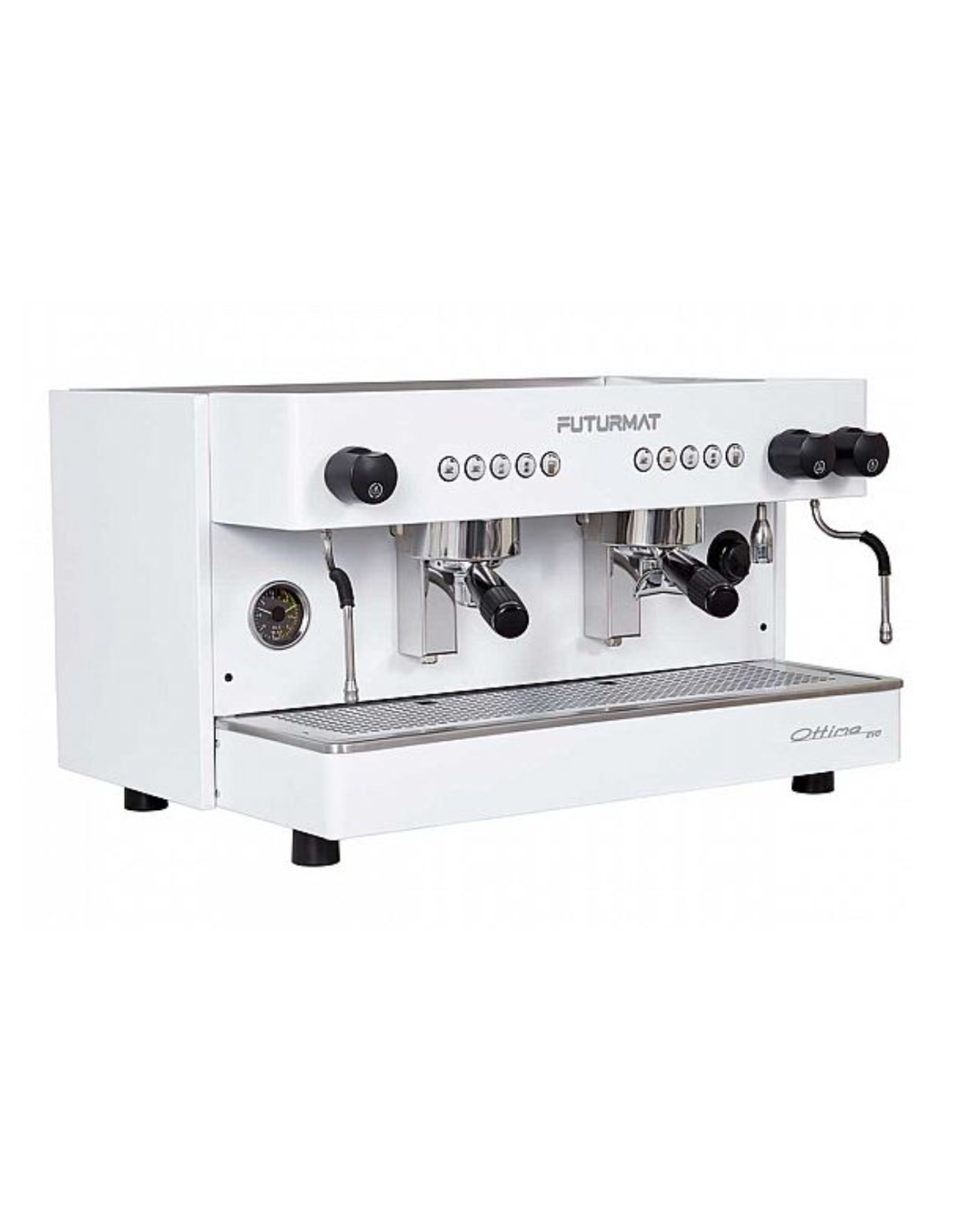 La Futurmat Ottima Evo 2G es una máquina profesional de 2 grupos, con caldera de cobre de 11 L, pulsadores LED, estabilidad térmica superior y un diseño elegante en blanco o negro. Esta equipada para poder programar 4 selecciones de cafe y tiene también control electrónico del nivel de agua.