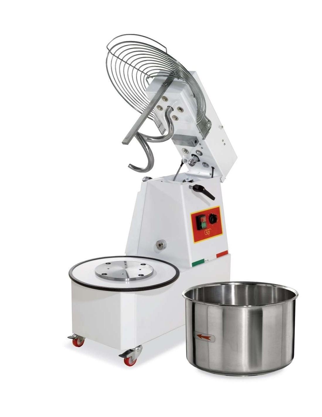 Amasadora espiral con cuba y cabezal extraible, ideal para masas de gran consistencia tales como pizza o pan.Recomendado especialmente para restaurantes panaderías y hoteles. dotadas de ruedas y fabricados en acero todos los elementos que entran en contacto con la masa.