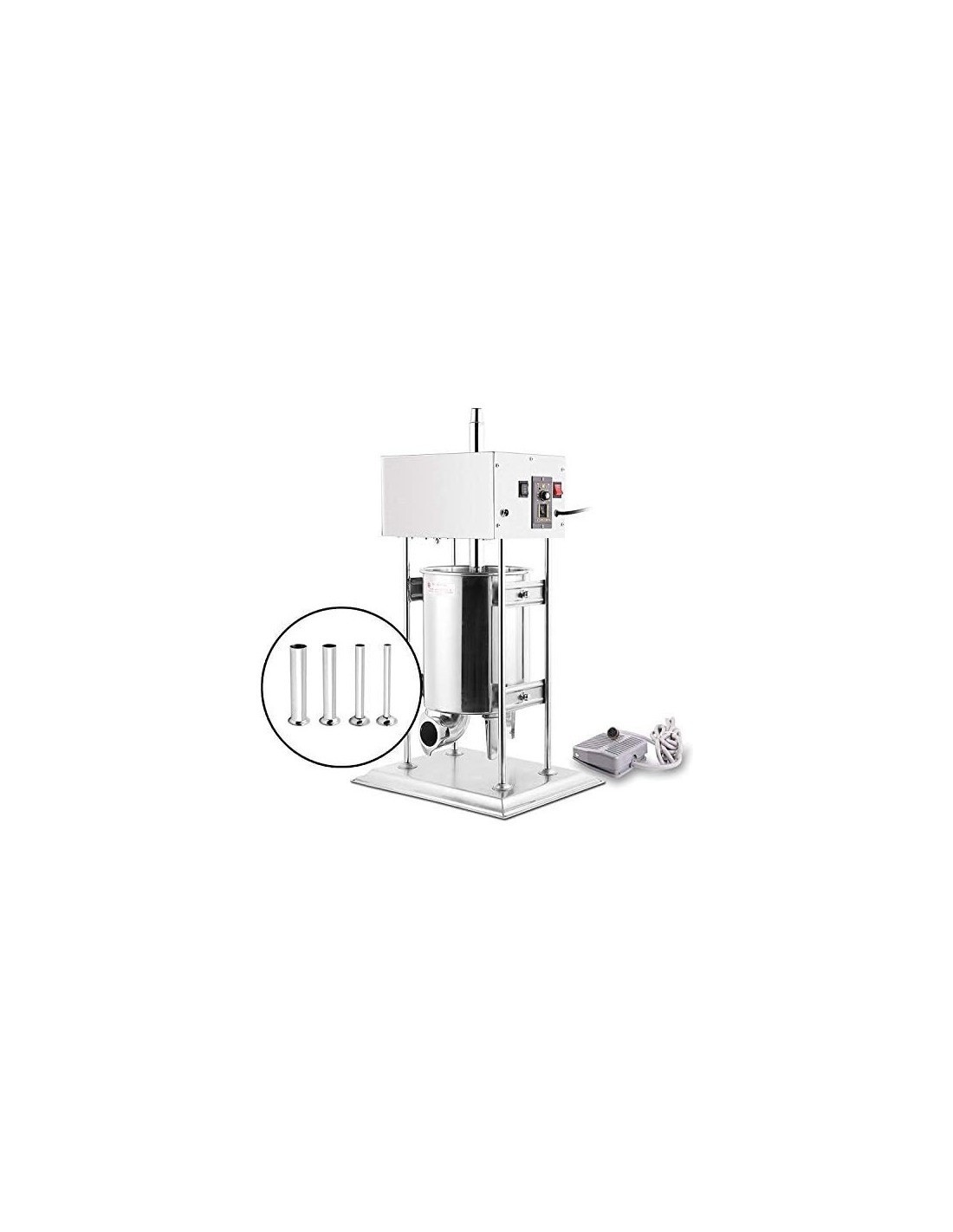 Cuenta con una producción de 100 kg/h y viene equipada con 4 embudos de 16, 22, 32 y 38 mm, adaptándose a distintos calibres de embutidos. Su pedal de control permite un manejo cómodo y preciso durante el llenado de las tripas, asegurando un trabajo seguro y uniforme.
