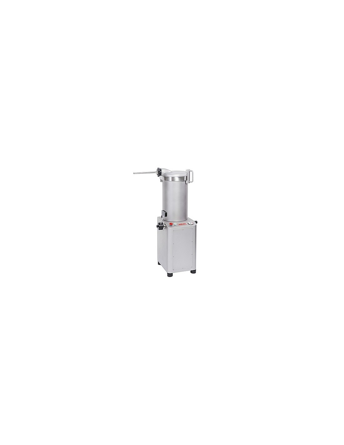 Fabricada principalmente en acero inoxidable 18/10, esta embutidora destaca por su durabilidad, resistencia y facilidad de limpieza. La velocidad y presión de trabajo se regulan de forma sencilla mediante un pomo de control, permitiendo adaptar la máquina a distintos tipos de masas y embutidos.