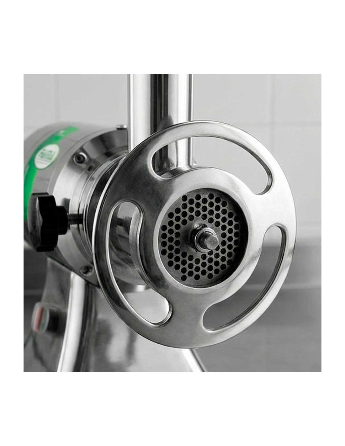 Picadora de carne con cuerpo fabricado en aluminio y acero inoxidable,que incorpora un motor autoventilado de gran potencia.Con boca de salida de 98 mm.Todos los modelos incorporan tolva, bandeja de recogida de acero inoxidable.