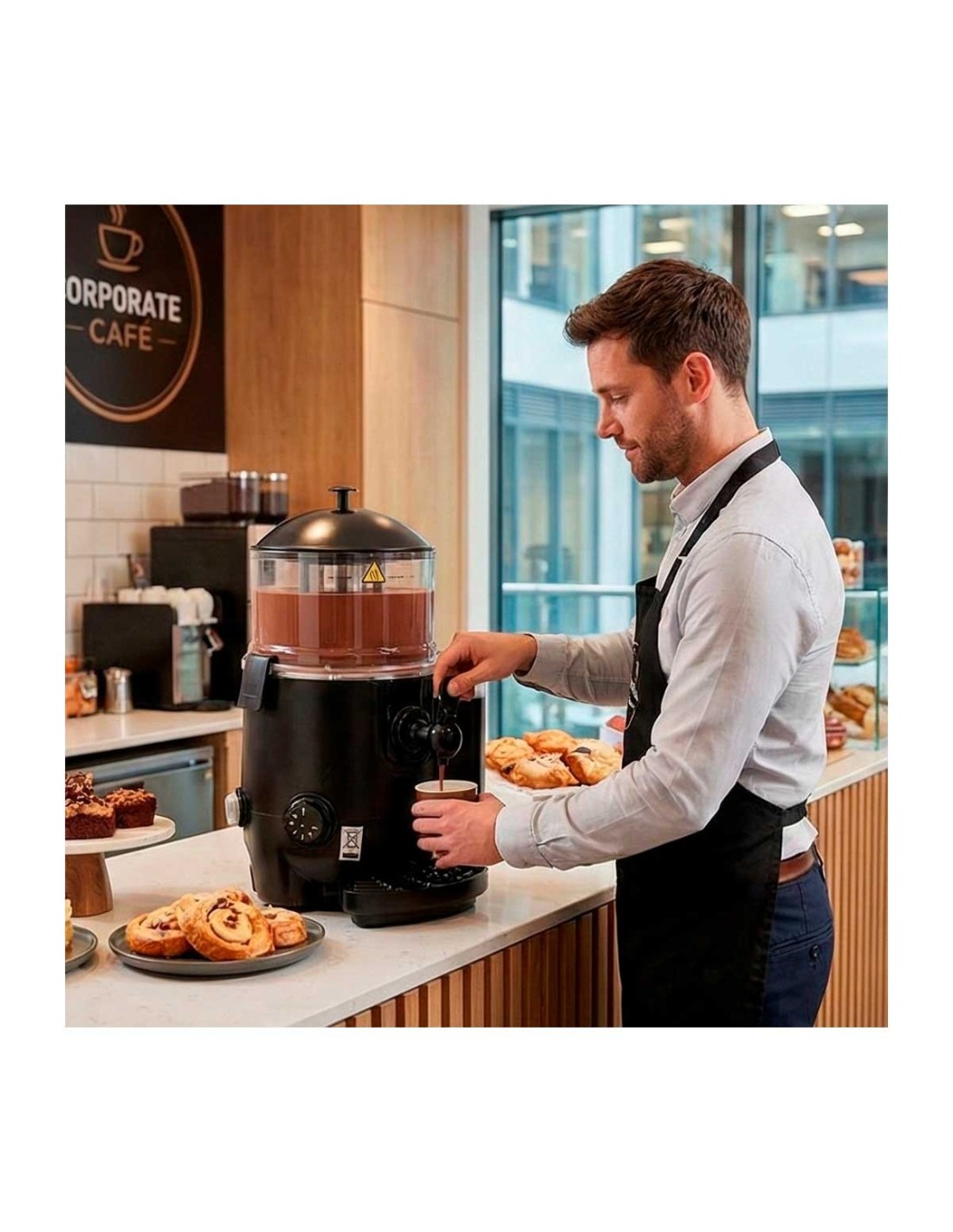 Con una capacidad de 5 litros, es una solución ideal para cafeterías, churrerías, hoteles y establecimientos de hostelería. Su diseño en acero inoxidable asegura resistencia, higiene y facilidad de limpieza, mientras que la mezcla continua mantiene el chocolate y otras bebidas en perfectas condiciones.