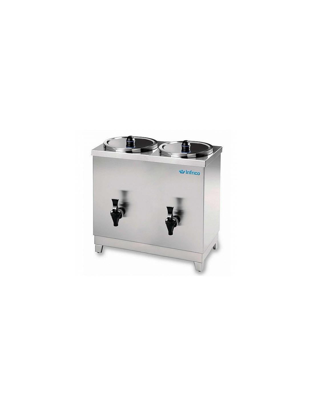El Termo de Leche Infrico TL-66 cuenta con dos cubas de 6 litros (6+6 L) y calentamiento al baño maría para mantener bebidas como leche, café o té a la temperatura ideal. Fabricado íntegramente en acero inoxidable AISI 304, incorpora termostatos independientes hasta 80 ºC, grifos de dos posiciones y depósitos desmontables. Perfecto para cafeterías, buffets y restaurantes con alta rotación.