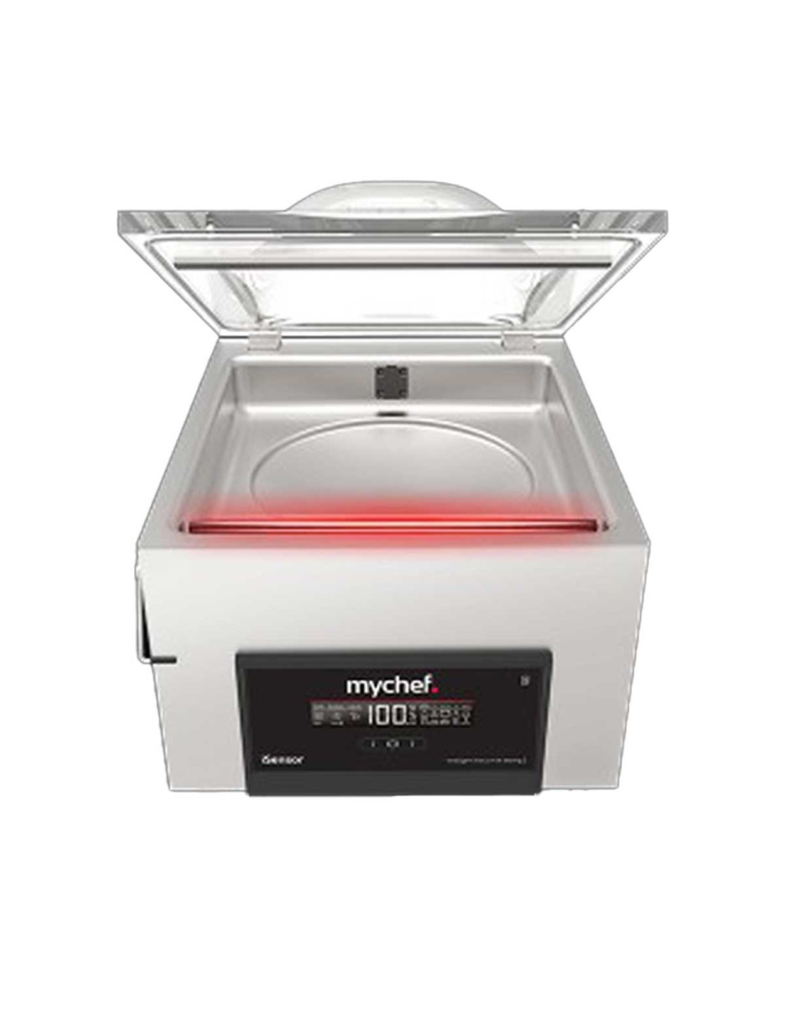Envasadora al vacío profesional MyChef iSensor M de sobremesa, 100 % automática, con bomba de hasta 20 m³/h, barra de sellado de 40,5 cm, tecnología iVac e iSeal, Bluetooth y app iOS/Android. Ideal para cocina profesional y envasado de precisión de todo tipo de alimentos y liquidos.