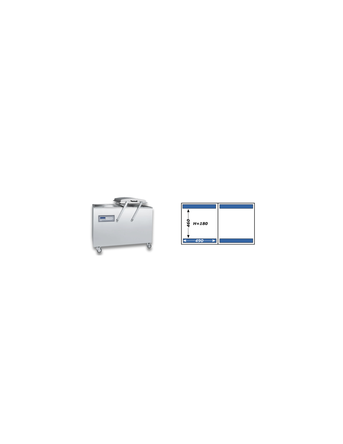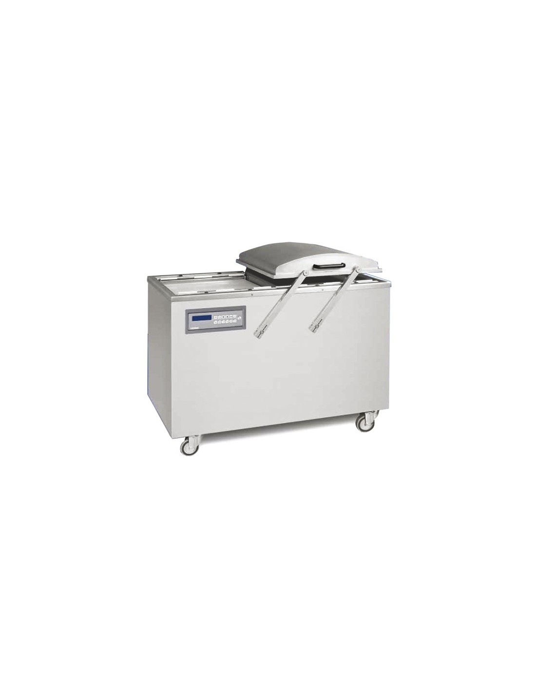 Fabricada íntegramente en acero inoxidable, incorpora una tapa oscilante con dos barras de sellado de 490 mm, que se desplaza entre ambas cámaras mediante brazos reforzados con sistema de muelles, garantizando suavidad de movimiento y durabilidad en uso intensivo.