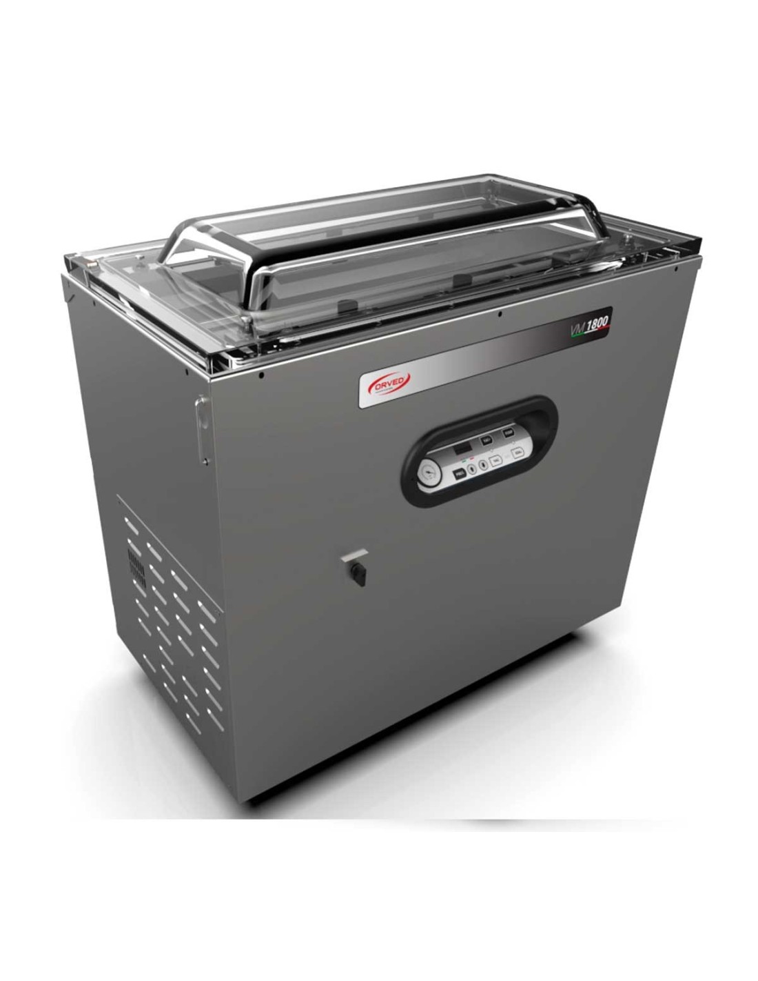 Envasadora al vacío profesional Orved VM 1800 Digital en acero inoxidable, con cámara “Power-Steel”, doble soldadura, bomba de 25 mc/h y panel digital. Perfecta para carnicerías, charcuterías, hoteles, catering y cocinas industriales. Consigue sellados herméticos, óptima conservación y máxima eficiencia en tu producción