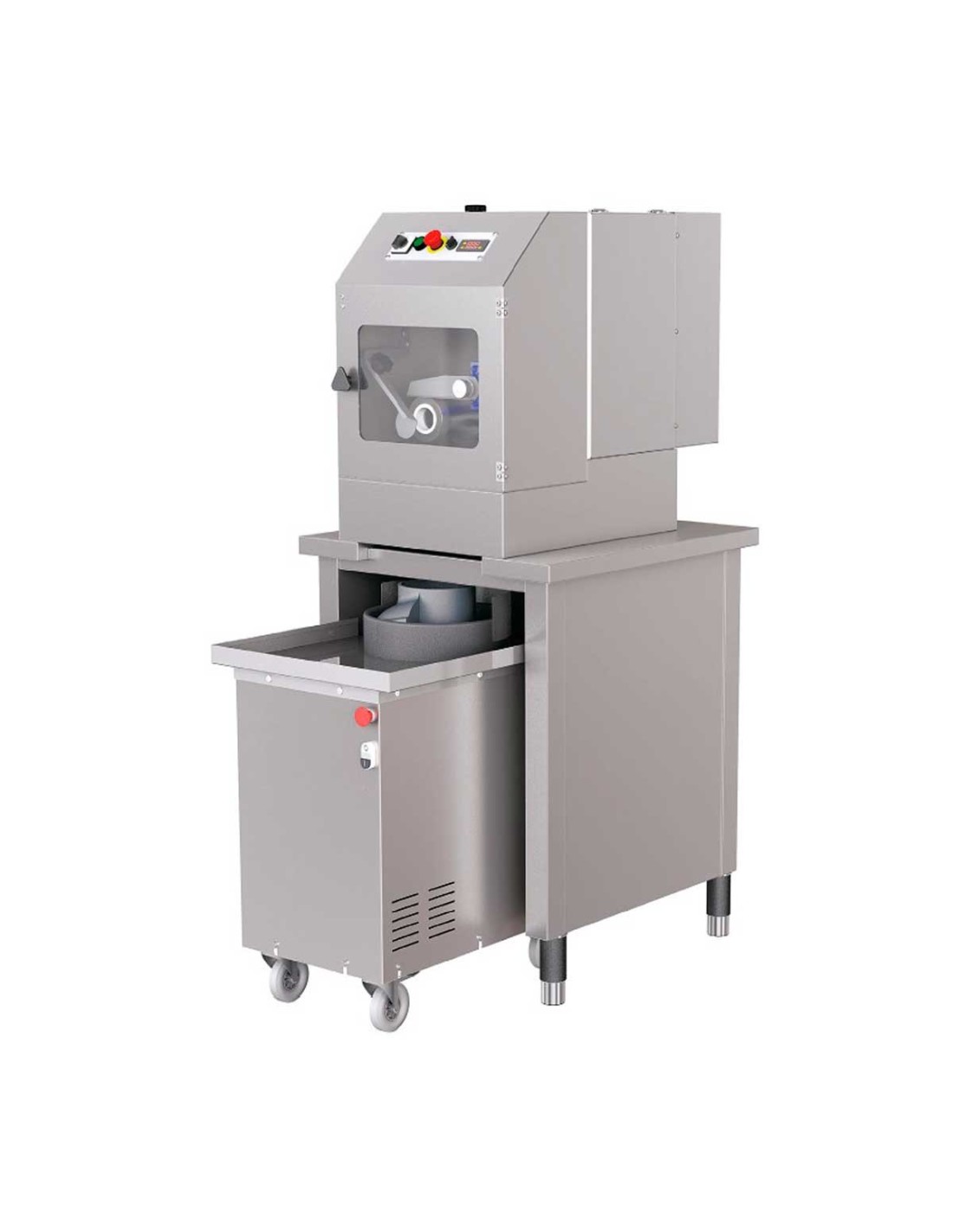 Gracias a su espiral interna, la boleadora consigue bolas lisas, compactas y perfectamente redondeadas. Con una sola máquina es posible cortar, dar forma y redondear hasta 30 kg de masa, optimizando tiempos y aumentando la productividad en pizzerías y obradores profesionales