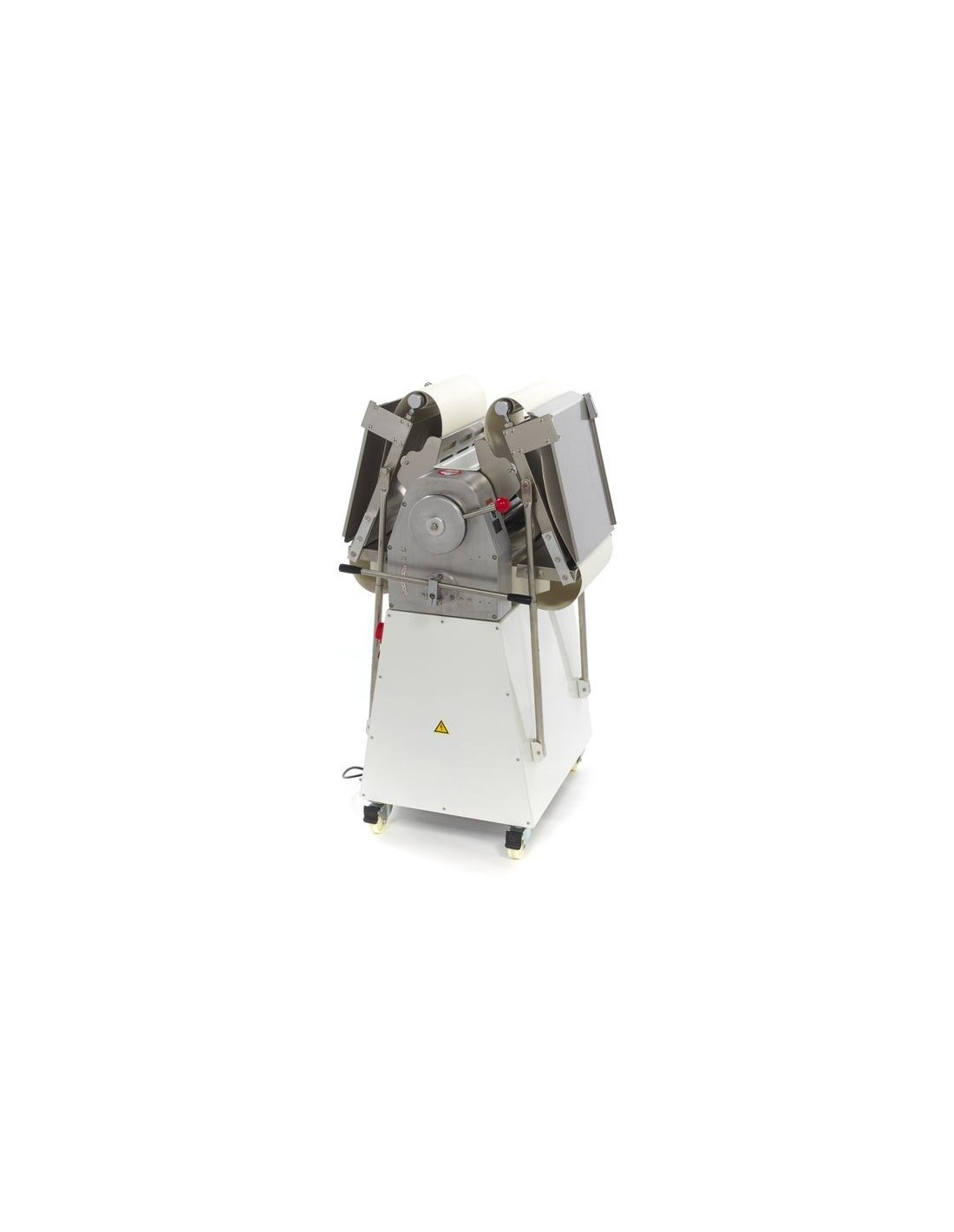 Este modelo destaca por su diseño plegable, lo que facilita el almacenamiento y el transporte. Dispone de una base con ruedas y freno, ideal para moverla cómodamente dentro del obrador. Además, el rodillo cuenta con rejillas de protección laterales, garantizando un uso seguro conforme a los estándares profesionales.