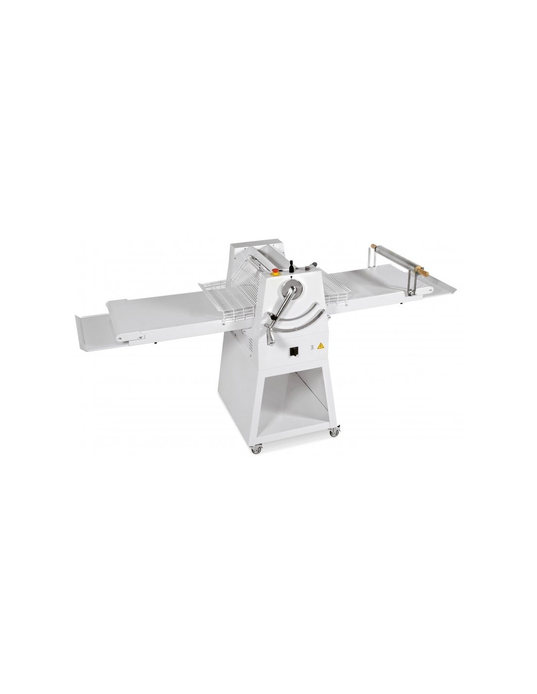 La estructura de acero con pintura alimentaria blanca antirrayado garantiza una gran resistencia y una larga vida útil. Incorpora rodillos fabricados en aleación de cromo y rejillas protectoras de acero inoxidable, lo que asegura un trabajo higiénico, seguro y conforme a las exigencias del entorno profesional.